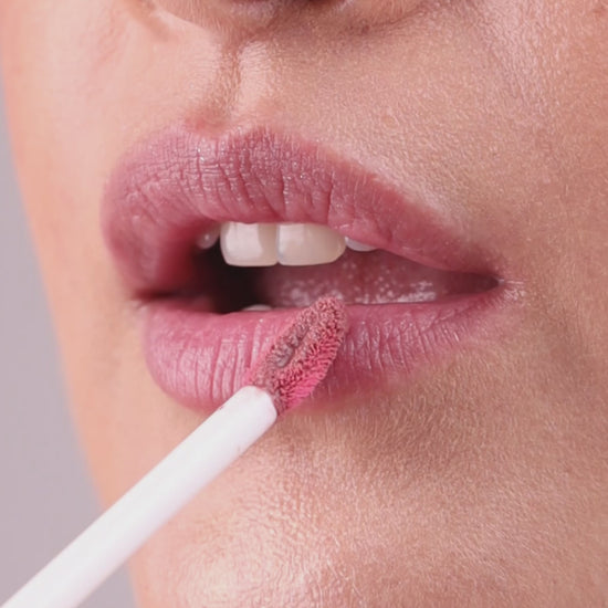 A dusty rose nude with neutral undertones. Subtle, romantic, and natural-looking, designed for sheer to light coverage with a shimmery glossy finish.